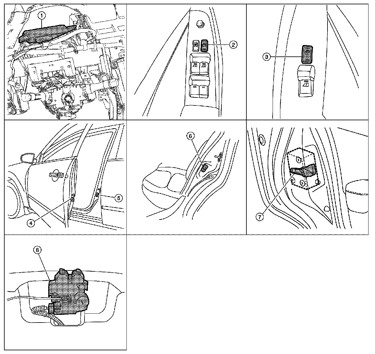 DOOR LOCK AND UNLOCK SWITCH : Component Parts Location