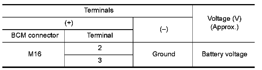 3.Check voltage between BCM connector and ground.