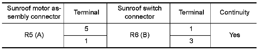 3.Check continuity between sunroof motor assembly connector (A) and sunroof switch connector (B).