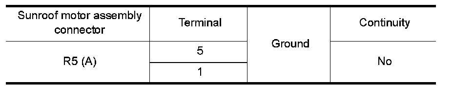 2.Check continuity between sunroof motor assembly connector and ground.