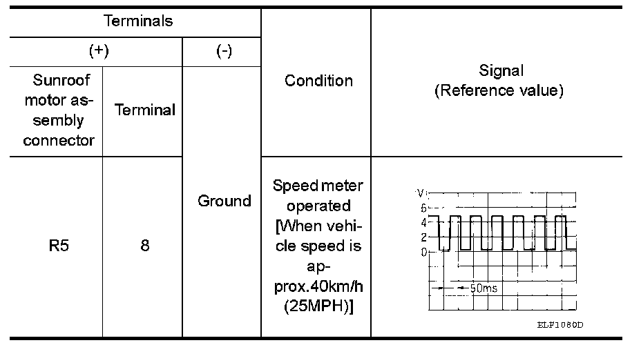 1.Check signal between sunroof motor assembly connector and ground with oscilloscope.