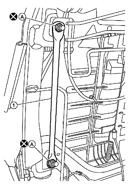 14.Remove and discard the two side air bag module nuts (A) from the side air bag module (1).
