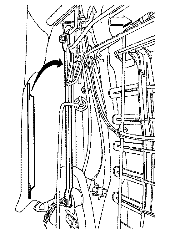 12.Remove the upper side air bag module harness clip (<==) from seat frame.