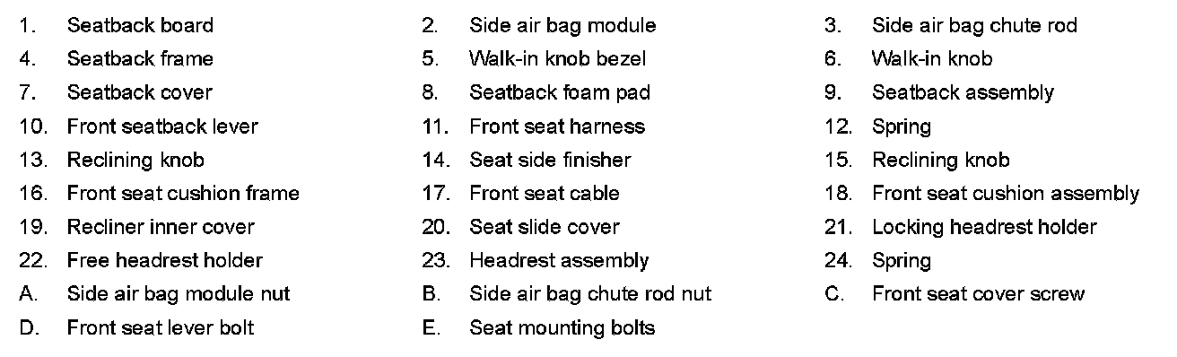 - For side air bag module removal and installation, seatback cover and seatback foam pad must be removed.