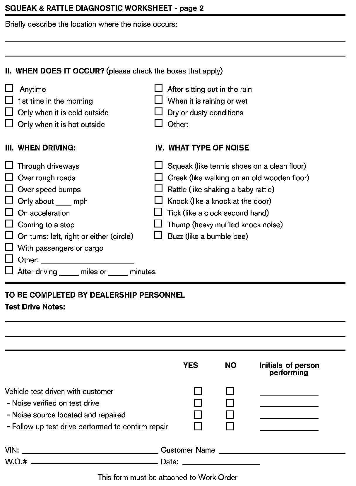 SQUEAK AND RATTLE TROUBLE DIAGNOSES