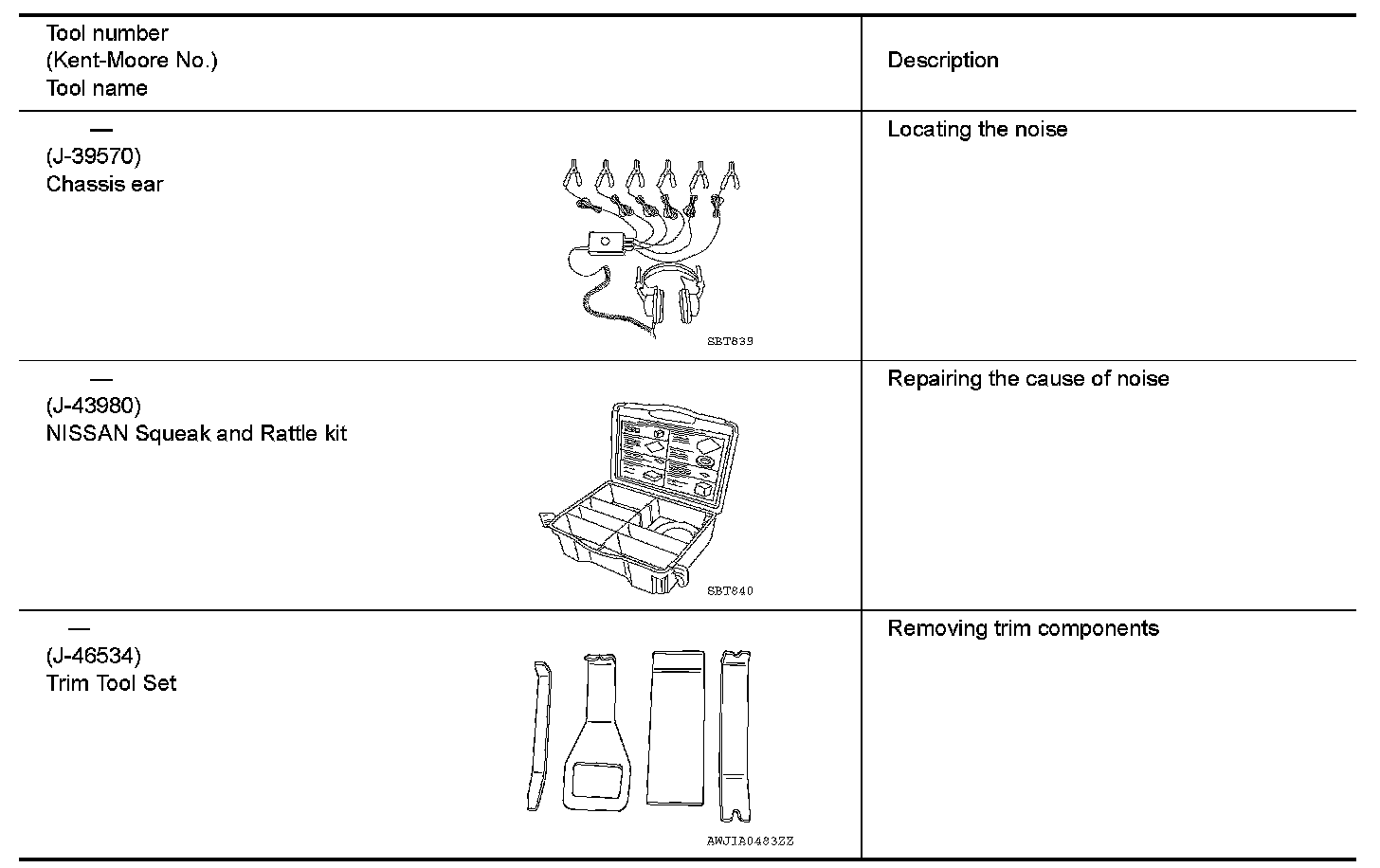 The actual shapes of Kent-Moore tools may differ from those of special service tools illustrated here.