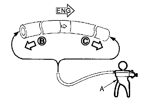 - Use a suitable tool (A) to check the one-way valve from each end of the hose.