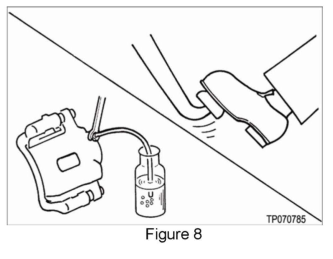 c. With brake pedal depressed, loosen bleed valve to let the air out, and then tighten it immediately.
