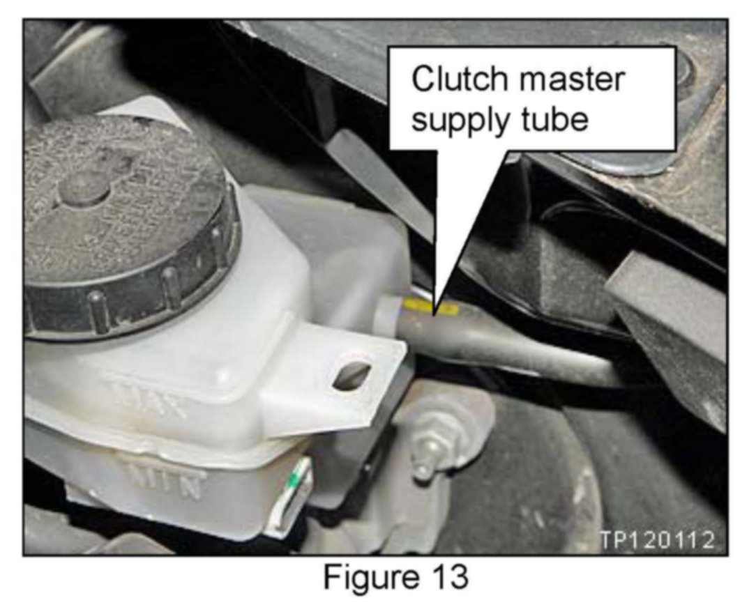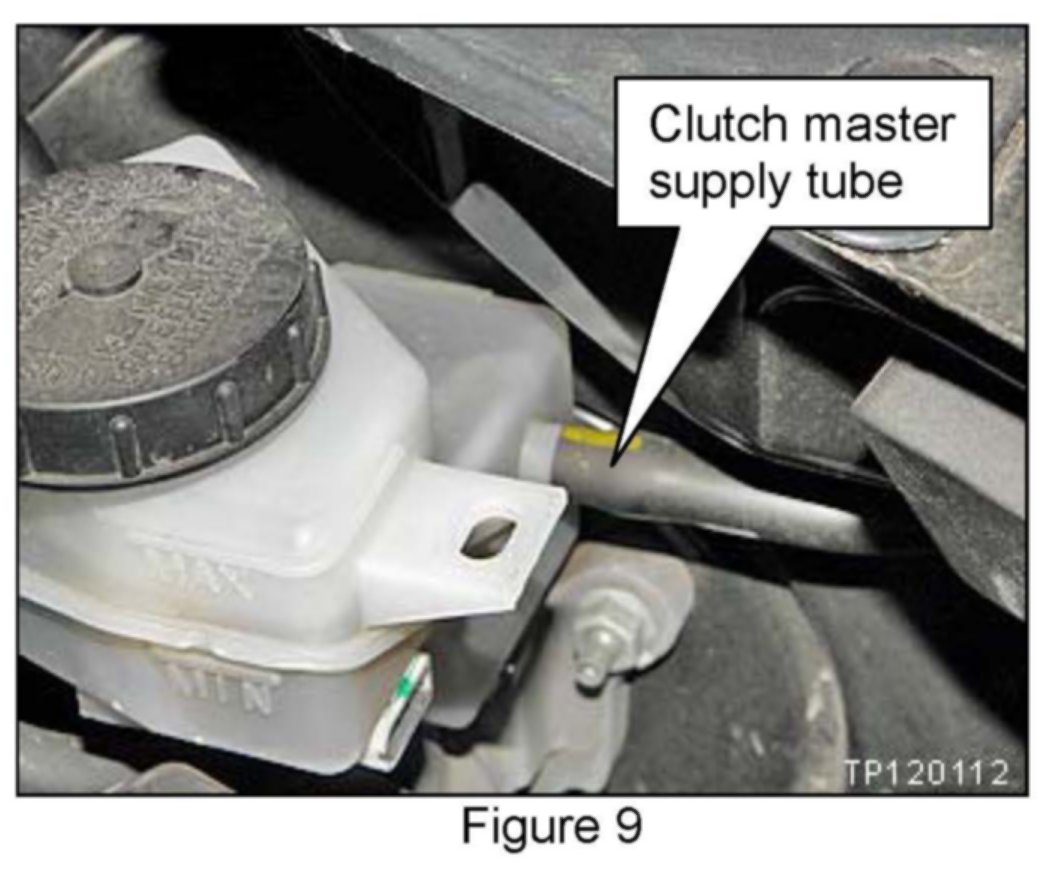 10. If equipped with manual transmission, remove the fluid supply tube for the clutch master cylinder.