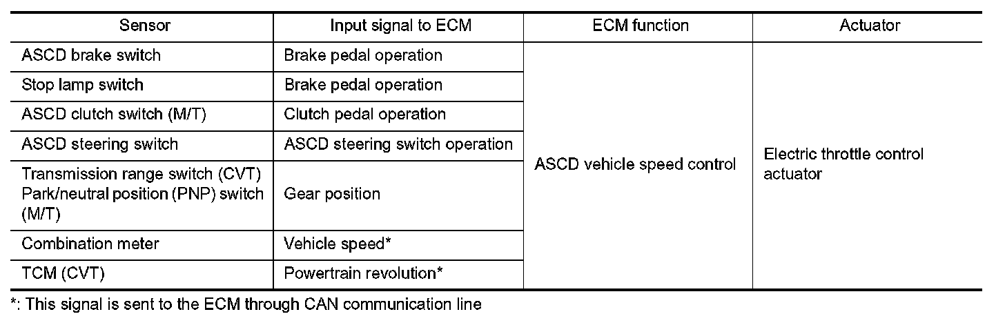 - More than 2 switches at ASCD steering switch are pressed at the same time (Set speed will be cleared)