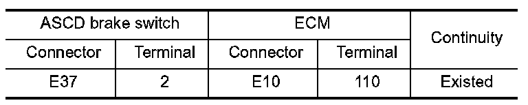 2.Check the continuity between ASCD brake switch terminals under the following conditions.