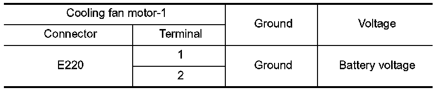 2.Check the voltage between cooling fan motor-1 harness connector and ground.