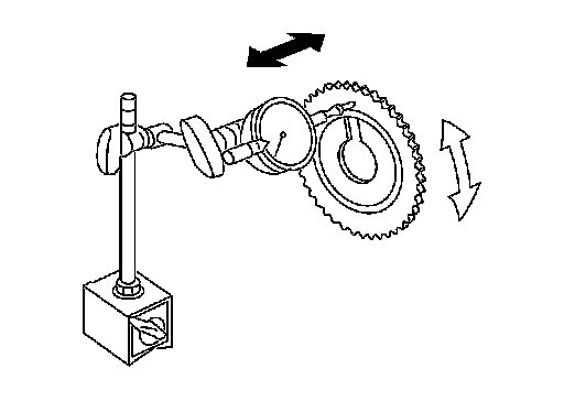 3.Measure camshaft sprocket runout while turning the camshaft by hand.