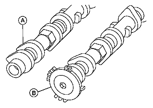 - The distinction between the intake and exhaust camshafts is in a difference of shapes of the back end: