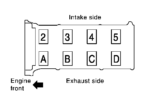 - Install camshafts so that the dowel pins on the front side are positioned as shown.