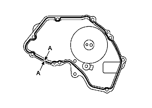 - Apply sealant to camshaft bracket contact surface on the front cover backside.