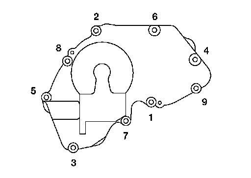 Step 1 (bolts 9 - 11) : 1.96 N.m (0.2 kg-m, 17 in-lb)