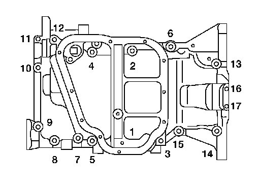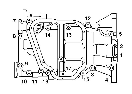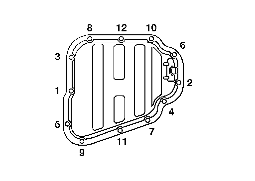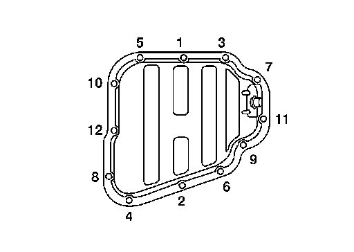 - Tighten the lower oil pan bolts in the numerical order shown.
