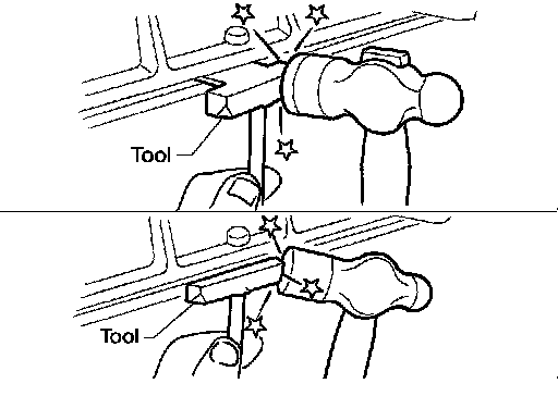 Tap gently to cut sealant around the pan; do not damage the mating surface using Tool.