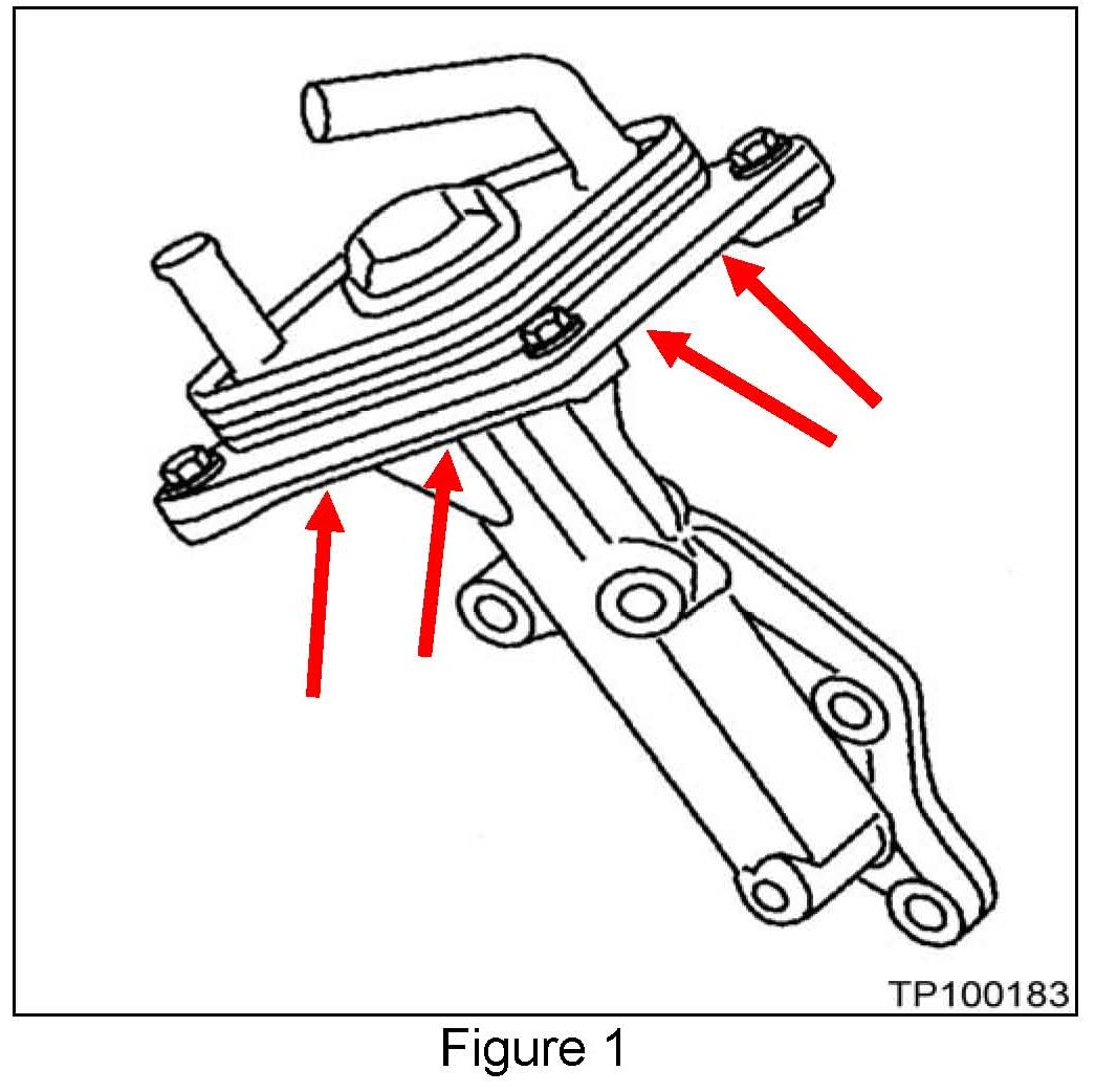 2. Remove the four (4) bolts, and then remove the upper half of the oil cooler. See Figure 2.
