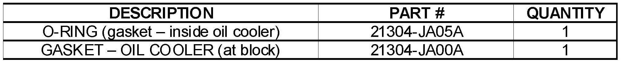Reseal the oil cooler with the parts listed in the PARTS INFORMATION.