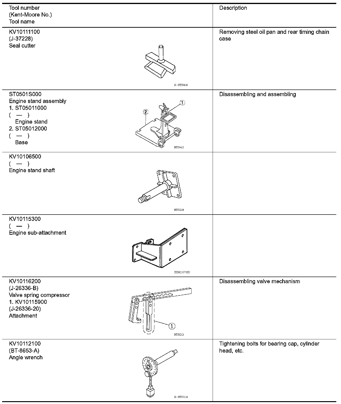 The actual shapes of the Kent-Moore tools may differ from those of the special service tools illustrated here.