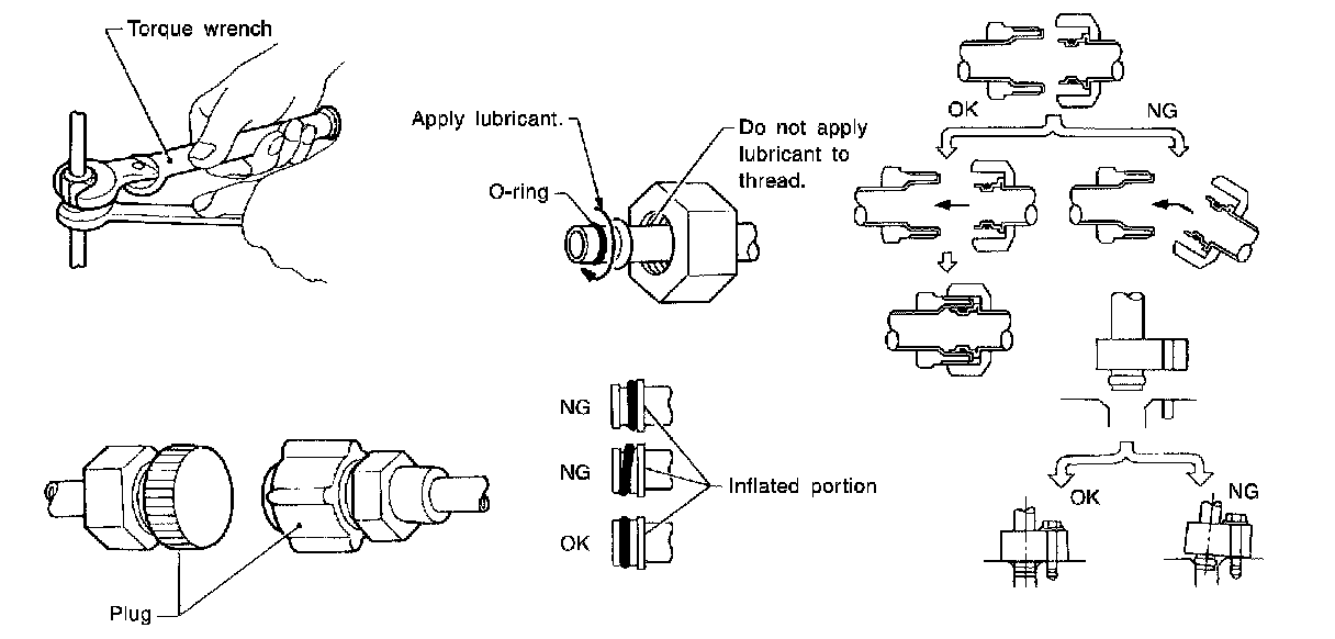 - After connecting line, conduct leak test and make sure that there is no leakage from connections.