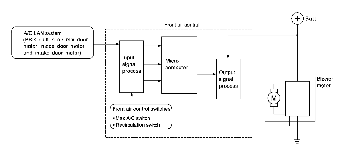 - A/C LAN system (Position Balanced Resistor [PBR] built-in mode door motor, air mix door motor and intake door motor)