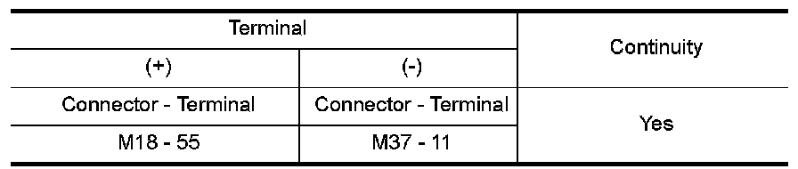 3.Check continuity between BCM harness connector M18 terminal 55 and front air control harness connector M37 terminal 11.