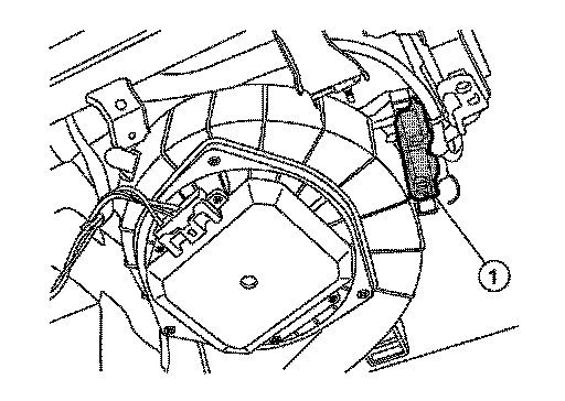 The intake door motor (1) is attached to the blower unit. It rotates so that air is drawn from inlets set by the front air control. Motor rotation is conveyed to a lever which activates the intake door.