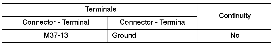 2.Check for continuity between front air control connector M37 terminal 13 and ground.