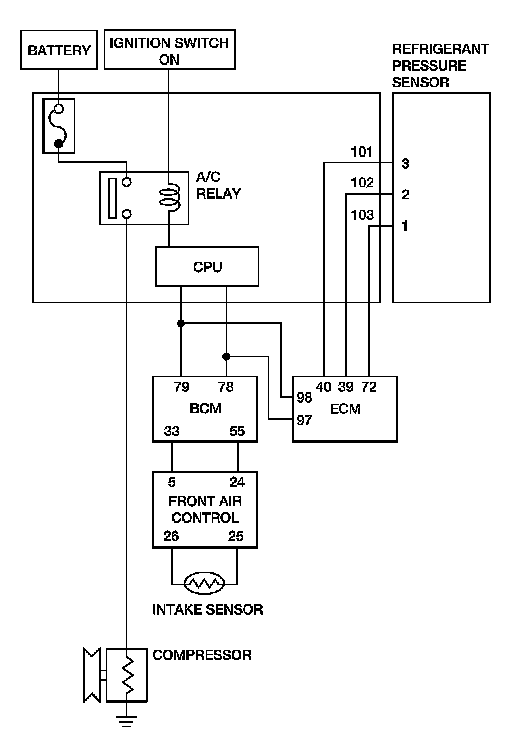 ON signal from the front air control, the conditions required for the BCM to transmit a compressor ON request to the ECM have been met.