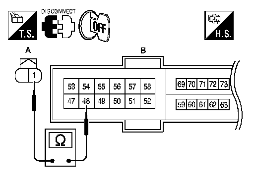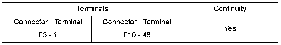 F3 (A) terminal 1 and IPDM E/R harness connector F10 (B) terminal 48.