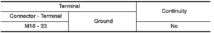 3.Check continuity between BCM harness connector M18 terminal 33 and ground.
