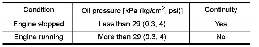Check continuity between oil pressure switch and ground.