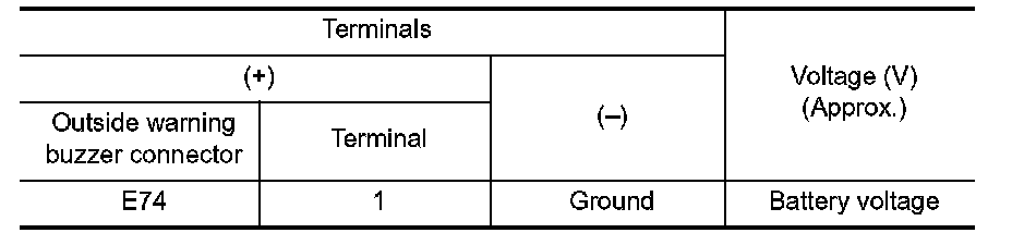 Check outside warning buzzer OUTSIDE BUZZER in Active Test mode.