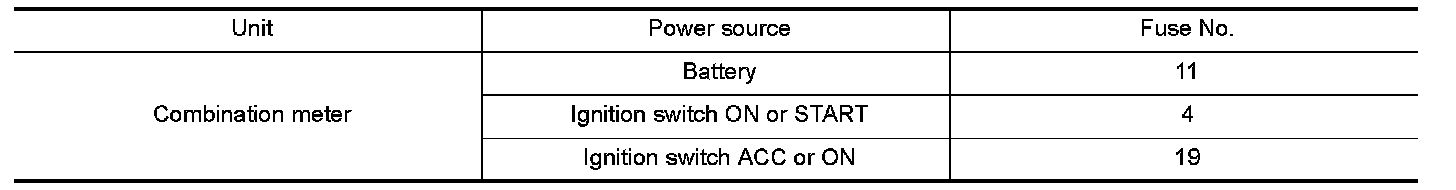 2.Check voltage between combination meter harness connector M24 terminals 1, 2, 14 and ground.