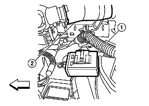 The tire pressure receiver (1) is located next to the steering column assembly (2) and is shown with the lower instrument panel LH removed. The tire pressure receiver receives the air pressure signal transmitted by the transmitter in each wheel.