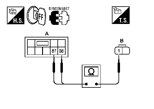 3.Check continuity between the IPDM E/R harness connector (A) and the front fog lamp harness connector (B).