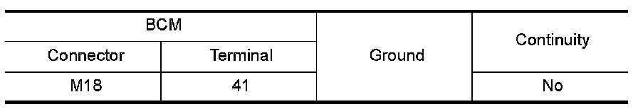 Check continuity between BCM connector M18 terminal 41 and ground.