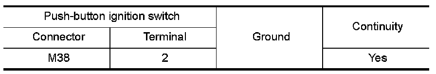 3.While operating the test item, check voltage between push-button ignition switch connector M38 terminal 3 and ground.
