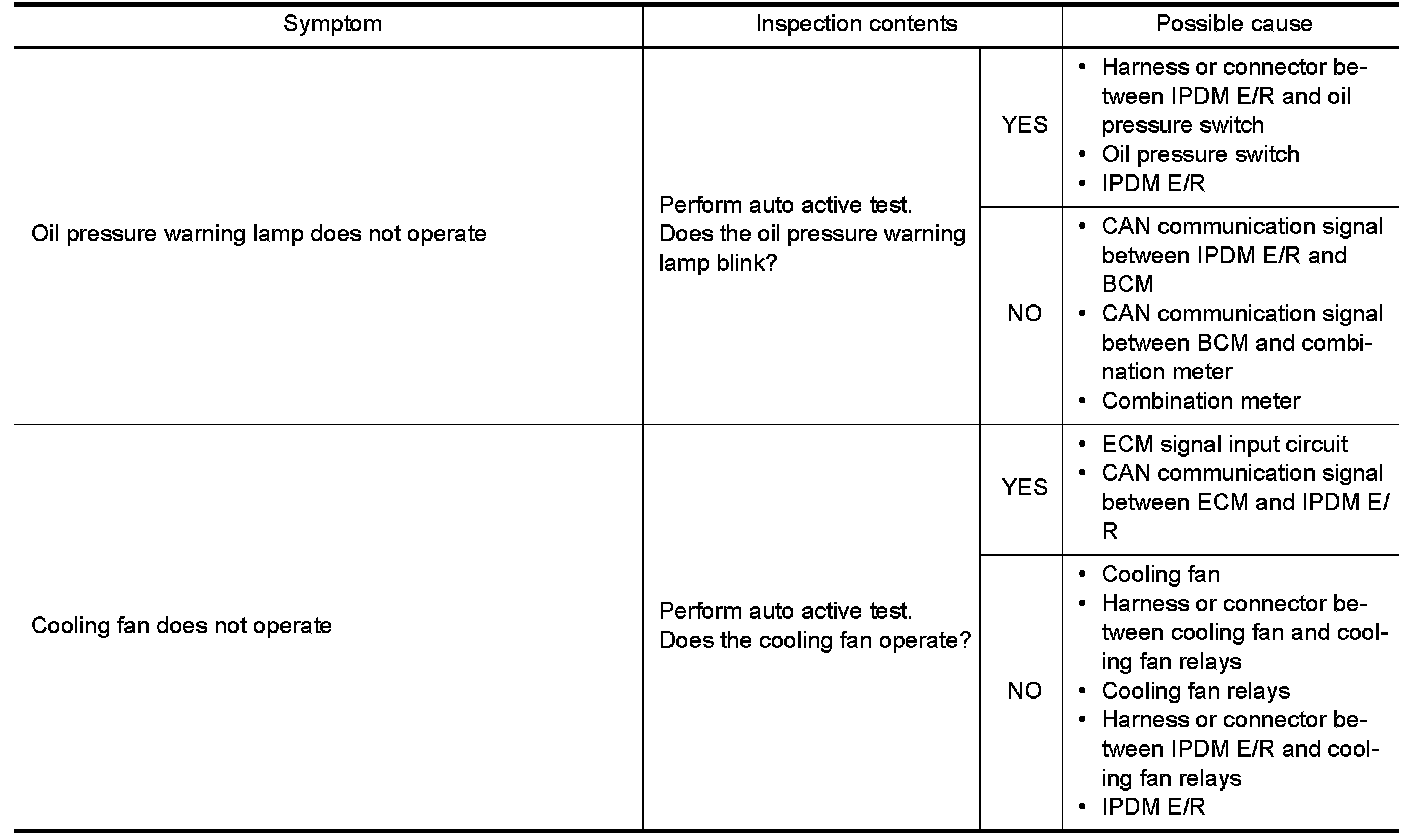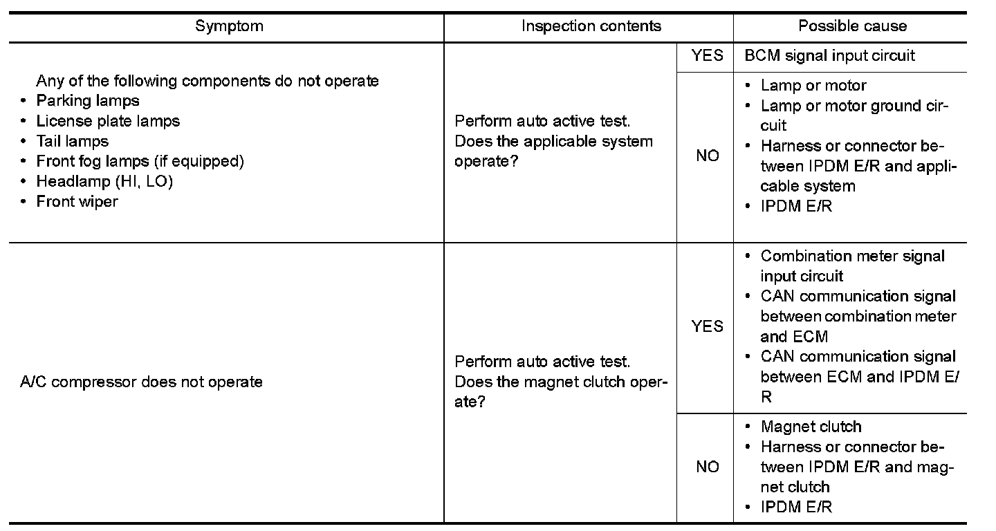- The auto active test facilitates troubleshooting if any systems controlled by IPDM E/R cannot be operated.