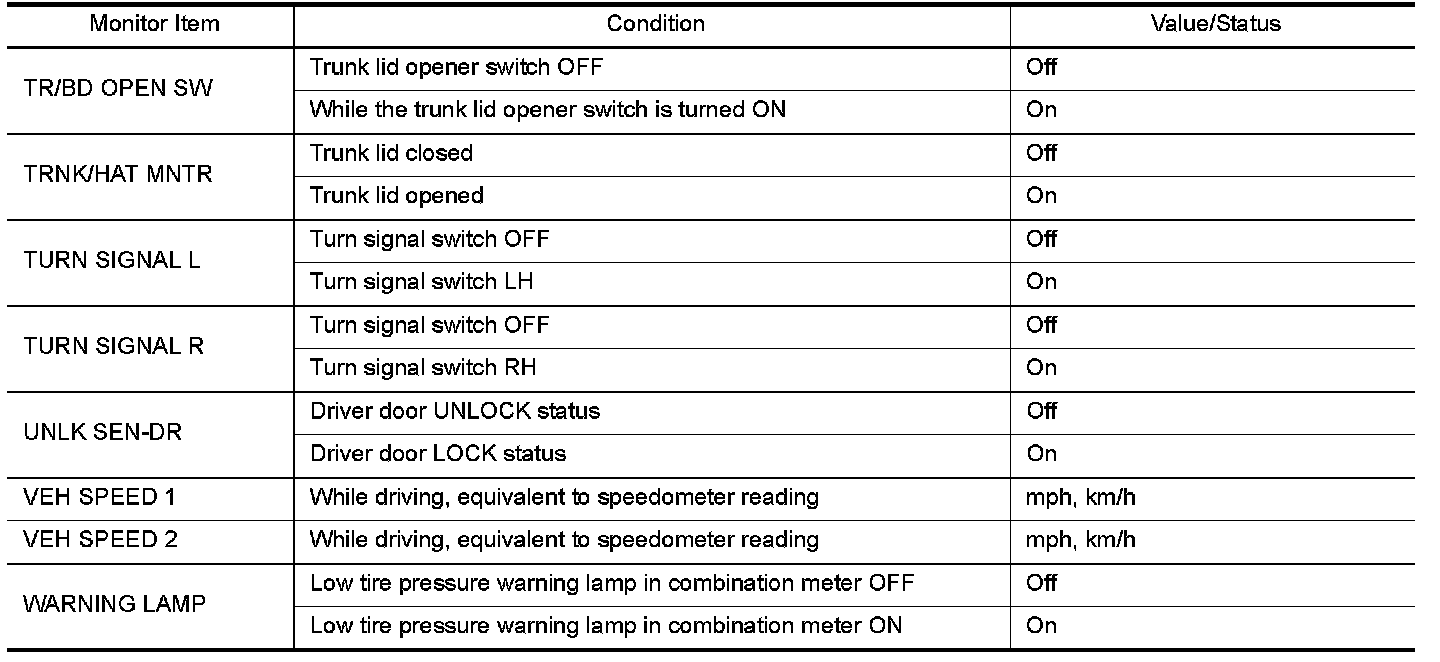 - Display tire pressure reported by the TPMS transmitter