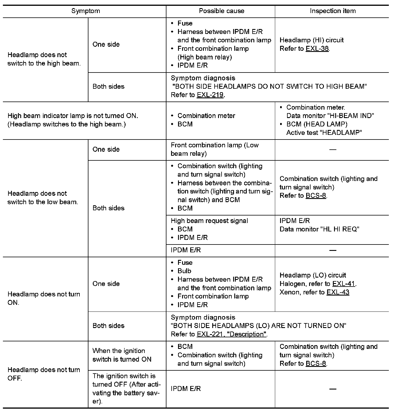 EXTERIOR LIGHTING SYSTEM SYMPTOMS