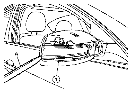 2.Release the side turn signal lamp (1) from the door mirror at the outer edge using a suitable tool (A).
