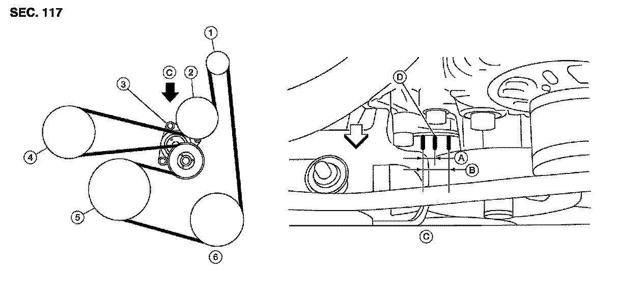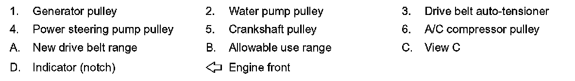 - Check the drive belt auto-tensioner indicator (notch) when the engine is cold.