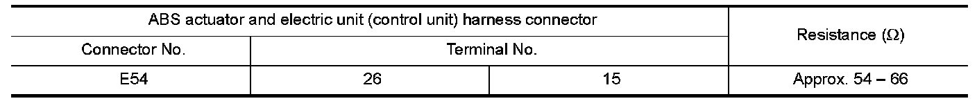 2.Check the resistance between the ABS actuator and electric unit (control unit) harness connector terminals.