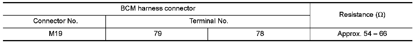 2.Check the resistance between the BCM harness connector terminals.