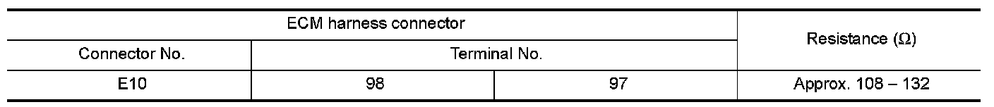 2.Check the resistance between the ECM harness connector terminals.