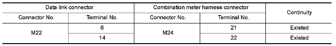 4.Check the continuity between the data link connector and the combination meter harness connector.
